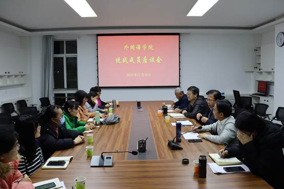 2020年12月30日,外国语学院党委召开统战成员座谈会。会议邀请了部分民主党派成员、无党派人士和归国留学人员代表参加,学院党委书记张永宁、院长毛浩然、校党委统战部副部长任晓东、党委副书记邹维忠出席座谈会,会议由张永宁书记主持。