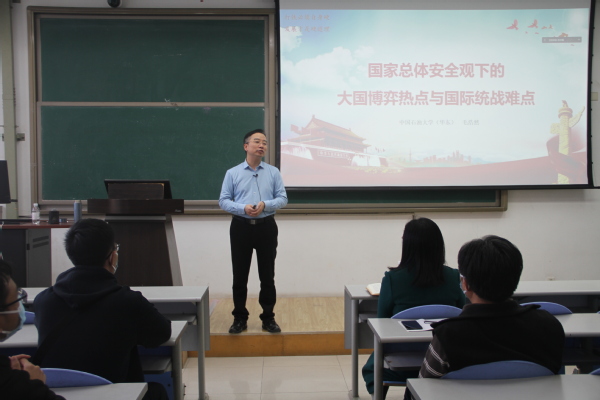 本次报告会邀请到我校外国语学院院长、省侨联特聘专家毛浩然教授,新能源学院副院长、校欧美同学会会员巩亮教授,青岛软件学院、计算机科学与技术学院副院长、校欧美同学会理事宋弢教授,地球科学与技术学院、校欧美同学会会长刘可禹教授做客同心讲堂,分别讲述了《总体国家安全观下的大国博弈热点与国际统战难点》、《从自然发展规律浅谈中国制度之优越性》、《漫谈欧美留学的底层逻辑与大国博弈》、《CCUS—石油人的新兴领域》。各位主讲人结合自身经历和专业特长,对相关社会热点、行业前沿等问题进行解读,与会师生表示受益良多,不仅开阔了视野,更对当前国际形势和行业前沿有了深入的了解和清醒的认识。