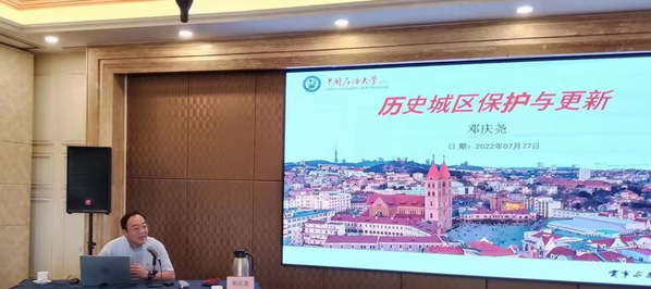 日前,应青岛市人大邀请青岛市政协常委、我校民革支部主委、储运与建筑工程学院邓庆尧教授为市人大代表做了题为“历史城区保护与更新”的专题辅导讲座。