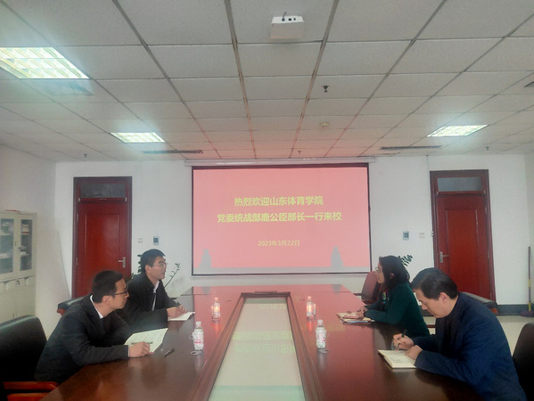 3月22日,山东体育学院党委统战部常务副部长鹿公臣、副部长陈鹏飞一行来校交流,校党委统战部部长吕宏凌及部门相关工作人员与来宾座谈交流。