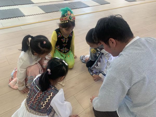 10月18日,在青岛西海岸新区第一幼儿园,会场中孩子们身着各民族服饰,热情洋溢。主持人带领着孩子们认识了维吾尔族、哈萨克族、蒙古族、藏族等民族的主要习俗和聚集地。团队成员通过活灵活现的舞蹈表演展现出了各民族文化艺术的魅力。随后,团队成员和孩子们互动,开展民族传统小游戏——羊拐,拉近了彼此的距离。最后大家合影留念,团队圆满完成此次活动。