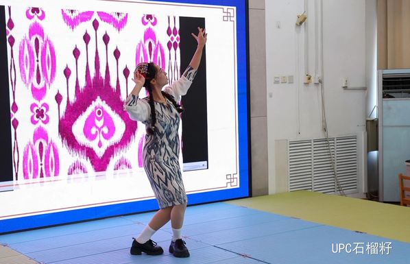 经济管理学院2022级苏比努尔介绍了维吾尔族的特色美食,如馕、抓饭等;通过视频及图片展示了传统服饰艾德莱斯和花帽;一一介绍了民族特色古典乐器,最后通过精彩的舞蹈表演引得小朋友们齐声欢呼。