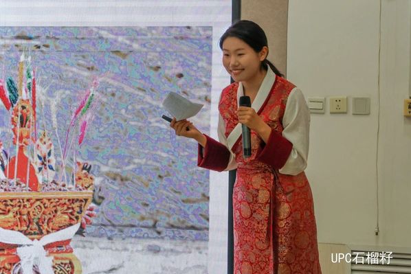 10月17日,在富春江路幼儿园的活动以提问小朋友对56个民族的认识开场,孩子们踊跃发言。文法学院2022级旦增曲吉介绍了藏族的服饰文化,如穿着藏服时露右臂的原因、彩色围裙及用邦典制作的坎肩等,还播放了围裙制作视频,并分享了以青稞为主食的美食和年夜饭、切玛盒等,让小朋友们领略到了藏族文化的魅力。